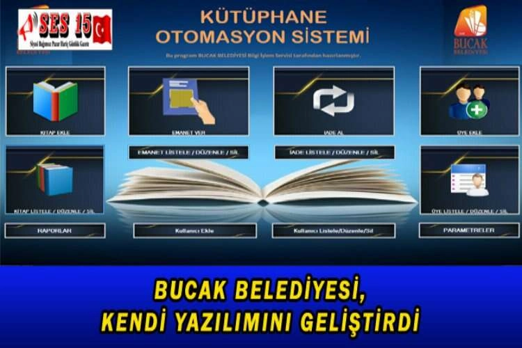 Bucak Belediyesi, hizmet ve projeler kapsamında oluşturduğu KİTAP CAFE projesinde daha hızlı ve daha etkin yürütülmesi için yeni bir yazılım geliştirdi. Kullanımına başlanan Kütüphane Otomasyon Sistemi olarak adlandırılan sistem kendi alanında ilk olma özelliğini taşıyor. Bucak Belediye Başkanı Emrullah ÜNAL; Bu otomasyon sistemi ile üyelere emanet olarak verilen kitapların dijital ortamda takibini sağlamak ve iade almak mümkün olacaktır. Belediyemizin Bilgi İşlem servisinde çalışan Bilgisayar Mühendisimiz Yasemin Yüksel ve Bilgisayar Teknikerimiz Osman TEKİN tarafından analiz edilerek geliştirilen yazılımı, siz halkımızın hizmetine sunduk. Bu saya de Kitap CAFE’mize gelen öğrencilerimiz ve vatandaşlarımızı bekletmeden, sıkmadan kitaplara olan ilgilerini arttırmak amacını taşıyarak bir kitap üssü haline getirdik. Ayrıca personelimiz tarafından geliştirilen yazılım gurur vericiydi, personellerimizin daha güzel projelere imza atacaklarına inanarak kendilerini tebrik ediyorum dedi.
