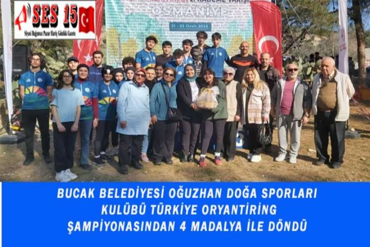 Bucak Belediyesi Oğuzhan Doğa Sporları Kulübü 24 sporcu ile Osmaniye ilinde gerçekleştirilen Türkiye Oryantiring Şampiyonası Şehitleri Anma 2. Kademe yarışlarına katılarak Bucak’ı temsil etti. Şampiyona sonucunda sporcular toplamda 3 farklı kategoride 4 madalya ile geri döndüler. Konuyla ilgili olarak Bucak Belediyesi Oğuzhan Doğa Sporları Kulübü tarafından yapılan açıklamada; “Bucak Belediyesi Oğuzhan Doğa Sporları Kulübü olarak 24 sporcu ile Şehitler diyarı Osmaniye İlimizde 21-23 Ocak 2023 tarihlerinde yapılan Türkiye Oryantiring Şampiyonası Şehitleri Anma 2. Kademe yarışlarına katılarak ilçemizi temsil ettik.” denildi. Açıklamanın devamı şöyle; “ Birçok ilden 102 kulüp ve yaklaşık 1200 sporcu katılımı olan Organizasyonda 20 şehit ailesi misafir edilerek kulüplerimiz ve sporcularımız ile zaman geçirmeleri sağlandı. Kulübümüz misafiri olan şehit yakınımız Muazzes İSPİR hanım efendiye yöremize has ürünlürden oluşan bir hediye vererek şükranlarımızı sunup hayır dualarını aldık. Çok güzel bir havada ancak Zorlu arazi şartlarında gerçekleşen yarışlarda sporcularımız toplanda 3 farklı kategoride 4 madalya ile geri dönmüşlerdir. Sporcularımız;