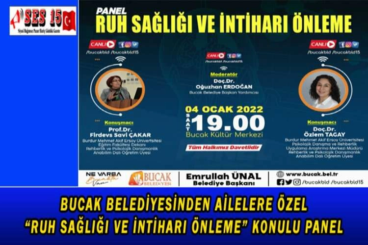 Bucak Belediyesi ile Mehmet Akif Ersoy Üniversitesi işbirliği ile ailelere özel panel düzenleniyor. Ruh Sağlığı ve İntiharı Önleme konulu panel 4 Ocak 2022 tarihinde Bucak Kültür Merkezinde saat 19:00’da düzenlenecek. Bucak Belediyesi sosyal ve kültürel etkinlikleri kapsamında Mehmet Akif Ersoy Üniversitesi işbirliği ile halkı bilinçlendirme ve farkındalık yaratmak için önemli bir panel düzenliyor, konunun uzmanlarını aileler ile buluşturuyor. Özellikle aileleri ilgilendiren Ruh Sağlığı ve İntiharı Önleme konulu paneli Bucak Belediye Başkan Yardımcısı Doç. Dr. Oğuzhan Erdoğan Moderatörlüğünde, konunun uzmanları Burdur Mehmet Akif Ersoy Üniversitesi Eğitim Fakültesi Dekanı, Rehberlik ve Psikolojik Danışmanlık Anabilim Dalı Öğretim üyesi Prof. Dr. Firdevs Savi Çakar ve Mehmet Akif Ersoy Üniversitesi Psikolojik Danışma ve Rehberlik Uygulama Araştırma Merkezi Müdürü, Rehberlik Psikolojik Danışmanlık Anabilim Dalı Öğretim Üyesi Doç. Dr. Özlem Tagay’ın katılımlarıyla 4 Ocak 2022 tarihinde saat 19:00’da Bucak Kültür merkezinde düzenlenecek. Panel’e tüm halkımız davetlidir.