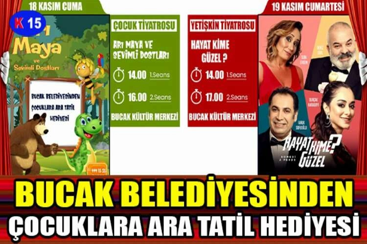 Bucak Belediyesi sosyal ve kültürel etkinlikleri kapsamında çocuklara ara tatil hediyesi , “ Arı Maya ve Sevimli Dostları” adlı tiyatro gösterisi 18 Kasım Cuma günü Bucak Kültür Merkezinde sergilenecek. Bucak Belediye Başkanı Emrullah Ünal; “Bucak Belediyesi olarak Sosyal ve Kültürel etkinliklerimiz kapsamında öğrencilerimizin yoğun geçen ilk dönem derslerinden sonra, öğrencilerimize ve çocuklarımıza ara tatil hediyesi olarak Arı Maya ve Sevimli Dostlarını ilçemize davet ettik. Arı Maya ve Sevimli Dostları 18 Kasım 2022 Cuma günü Bucak Kültür Merkezinde çocuklarımızla 1. Seansta saat 14:00’de, 2. Seansta saat 16:00’da buluşacaklar. Tüm çocuklarımızı ve öğrencilerimizi çocuk tiyatro gösterimizi izlemeye davet ediyorum” dedi.