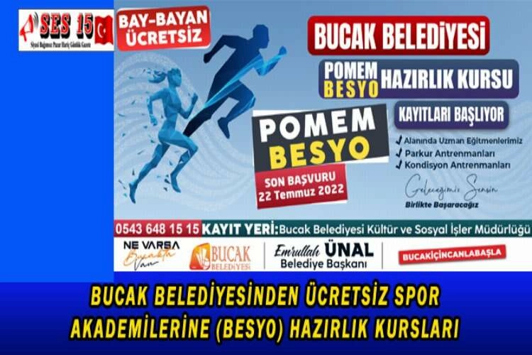 Bucak Belediyesi Kültür ve Sosyal İşler Müdürlüğü tarafından başlatılan çalışma ile Bucak’ta bulanan lise ve dengi okullarda eğitim gören öğrenciler için verilecek olan Spor Akademisi’ne Hazırlık Kursu’nun (BESYO) kayıtları, başladı. Son Başvuru Tarihi: 22 Temmuz. Bucak Belediyesi tarafından ücretsiz verilecek kurslarda gençler spor liseleri, askeri okullar, BESYO, Spor Bilimleri Fakültesi, POMEM ve Bekçilik gibi sınavlara eğitmenler eşliğinde hazırlanacak. Ücretsiz olarak verilecek olan Spor Akademisi’ne Hazırlık Kursu’nun başvuruları, 20 Temmuz- 22 Temmuz 2022 tarihleri arasında Bucak Belediyesi Kültür ve Sosyal İşler Müdürlüğüne yapılacak. Bucak Belediye Başkanı Emrullah Ünal yaptığı açıklamada, gençlerimize her anlamda destek vermek için elimizden geleni yapıyoruz. Geleceğimizin teminatı gençlerimizin gelecekleri adına spor akademilerine hazırlık kurslarımızı açıyoruz. Gençlerimizi sınavlara hazırlıyoruz.” Dedi.