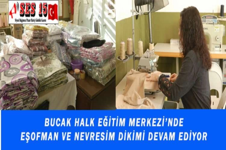 Bucak’ta Halk Eğitim Merkezi Müdürlüğü bünyesinde görev yapan usta öğreticiler ve gönüllü kursiyerler evlerinden ve vatandaşların getirdiği kumaşlardan hem nevresim takımı hem de yetişkin çocuk eşofman takımı dikiyor. İlçede KYK yurdunda kalan vatandaşlar için hazırlanan ürünlerin fazlası ise ihtiyaç duyulan diğer noktalara sevk ediliyor. Deprem Bölgesinden diğer illere ve ilçelere sevk, sağlanan vatandaşların ihtiyaç listesinin tamamlanabilmesi adına bu süreçte Bucak’taki hayırsever vatandaşlardan Halk Eğitim Merkezi Müdürlüğü’ne kumaş yardımı yapması bekleniyor. Bucak Halk Eğitim Merkezi’ni adeta tekstil atölyesine çeviren öğretmenler ve gönüllü kursiyerler, çocuk bedenlerine göre kesim, dikim yaptıkları eşofman takımlarını çocuk yaş gruplarına göre ayrılıp paketleyerek ihtiyaç dahilindeki yerlere resmi kurumlar aracılığıyla gönderiyor Merkezdeki Gönüllü kursiyerlerden Rabia Aktaş, “Burada kursiyerlerimizle çocuklar için eşofman, bebek takımı, kundak, yastık diktik. Yetişkinler için de nevresim takımı dikiyoruz. Depremde hayatını kaybedenlere Allah’tan rahmet, yakınlarına başsağlığı ve sabır, yaralılara ise acil şifalar diliyoruz. Allah tekrar böyle felaketler yaşatmasın” dedi.