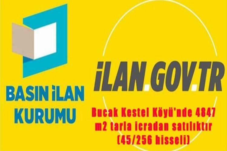 Basın İlan Kurumu’nun ilan portalı ilan.gov.tr’de yer alan ilana göre; T.C. BUCAK İCRA DAİRESİ Burdur ili , Bucak ilçesi , Kestel Köyü , Baksı Mevkiinde 4847 m2 tarla icradan satılıktır. Taşınmazın 1. Satış günü 26.08.2021 tarihinde saat 12:00da BUCAK BELEDİYESİ RECAİ TOSYALI DÜĞÜN SALONU KONAK MAH. GENÇOSMAN CAD. NO:94 BUCAK BURDUR adresinde yapılacaktır. İlana dair detaylı bilgi Basın İlan Kurumu ilan.gov.tr adresinden alınabilir.