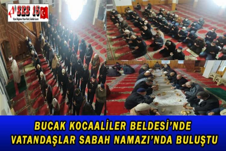Diyanet İşleri Başkanlığı’nca başlatılan “Sabah Namazı’nda buluşuyoruz” etkinliği kapsamda Bucak İlçe Müftülüğü koordinesinde 26 Aralık Pazar günü vatandaşlar Bucak’a bağlı Kocaaliler Beldesi Merkez Camiinde sabah namazında buluştu. Vatandaşları ve özellikle gençleri namaza teşvik etmek amacıyla gerçekleştirilen etkinlik ilk olarak 12 Aralık 2021 tarihinde Bucak Merkez Hacı Ömer Ağa Camiinde idrak edilmişti. “Sabah Namazı’nda buluşuyoruz” etkinliğinin 2.’si Bucak’a bağlı Kocaaliler Beldesi Merkez Camiinde düzenlendi. Belde halkının yanı sıra Bucak ve çevre Köylerden de vatandaşlar sabah namazında buluştu. Etkinlikte Bucak Barboros Camii İmam Hatibi Mehmet Gövyaprak tarafından sabah namazını kıldırıldı. Bucak Hacı Ömerağa Camii İmam-Hatibi İbrahim Ethem Özkan' ın tesbihat ve Kur'an Kerim Tilavetinin ardından Bucak İlçe Müftüsü Mehmet Ersöz tarafından dua okundu. Kocaaliler Belediyesi tarafından cami çıkışında cemaate çorba ikramı yapıldı.