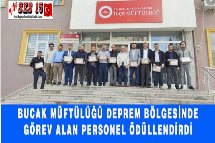 6 Şubat 2023 tarihinde meydana gelen ve asrın felaketi olarak nitelendirilen Kahramanmaraş merkezli depremlerle mücadelede milletimizin yaralarını sarmak için ortaya koyulan fedakarlıktan ötürü görev alan personel, Diyanet İşleri Başkanı Prof. Dr. Ali Erbaş tarafından Başarı Belgesi ile taltif edildi. Bucak Müftüsü İbrahim Keser, deprem bölgesinde görev alan personele teşekkür ederek başarı belgelerini takdim etti. MERYEM SENEM KANIK