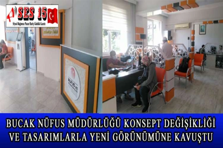 Türkiye genelinde nüfus müdürlüklerinde vatandaşa daha iyi hizmet verilebilmesi, iş ve işlemlerin hızlı sonuçlanabilmesi için yenileme çalışması gerçekleştirildi. Yapılan yenileme çalışmaları ile Bucak İlçe Nüfus Müdürlüğü de Yeni Nüfus Müdürlüğü Konsepti kapsamında farklı ve ferah bir görünüme kavuştu. Türkiye genelinde Yeni Nüfus Müdürlüğü Konsepti kapsamında Nüfus Müdürlüğü kurumları hizmet birimleri yeniden tasarlandı. Bu sayede ülke genelindeki il ve ilçelerdeki nüfus müdürlüklerinin tıpkı banka şubeleri gibi benzer standartta olması sağlanacak. Yapılan yeni Nüfus Müdürlüğü Konsepti kapsamında Bucak İlçe Nüfus Müdürlüğünde de bir takım değişiklikler yapıldı. Çalışmalarda kapılar, sandalyeler, koltuklar, perdeler değiştirildi, banka şubelerine benzer standartta personelin hizmet verdiği çalışma masaları arasına turuncu, gri ve beyaz renkte yeni tasarımlar yerleştirildi. Çalışmalar vatandaşın da ilgisini çekerken randevu hizmetleriyle işlemler daha aktif hale getirildi, pasaport, sürücü belgesi ve kimlik basımları hızlandırıldı.