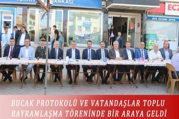 Ramazan Bayramı dolayısıyla Bucak’ta toplu bayramlaşma programı düzenlendi. Bucak Cumhuriyet Meydanında Salı günü saat 09.30’da gerçekleştirilen toplu bayramlaşma programına Bucak Kaymakamı Yalçın Sezgin, AK Parti Burdur Milletvekili Yasin Uğur, Bucak Belediye Başkanı Emrullah Ünal, İlçe Jandarma Komutanı Yüzbaşı Vahdet Nart, İlçe Emniyet Müdürü Mustafa Erdener Bede, Belediye Başkan Yardımcısı Ferruh Kanık, Siyasi Parti Temsilcileri, STK Temsilcileri, Belediye Meclis Üyeleri, İl Genel Meclisi Üyeleri, Kamu Kurum ve Kuruluşlarının Müdürleri, muhtarlar ve vatandaşlar katıldı. Törende ilk olarak protokol üyeleri ve vatandaşlar bayramlaştı. Törende konuşan Bucak Belediye Başkanı Emrullah Ünal, birlik ve beraberlik içinde bir Ramazan Ayı geçirerek iftar sofralarında vatandaşlarla buluşarak Ramazan Bayramına ulaşmanın mutluluğunu yaşadıklarını ifade ederek herkesin Ramazan Bayramını kutladı. AK Parti Burdur Milletvekili Yasin Uğur, Bayram sabahına ölümlü trafik kazasına haberi ile başlamanın bayramda büyük üzüntü yaşattığını belirterek tüm sürücüleri daha da dikkatli olmaya davet etti. Sağlık, mutluluk, huzur içinde bir Ramazan Bayramı geçirmeyi temenni ederek Tüm İslam Aleminin Ramazan Bayramını kutladı. Bucak Kaymakamı Yalçın Sezgin, bütün bayramların bugünkü gibi birlik beraberlik içinde geçmesini temenni ederek herkesin Ramazan Bayramını kutladı. Bucak İlçe Müftüsü Mehmet Ersöz tarafından yapılan dua ile toplu bayramlaşma töreni sona erdi.