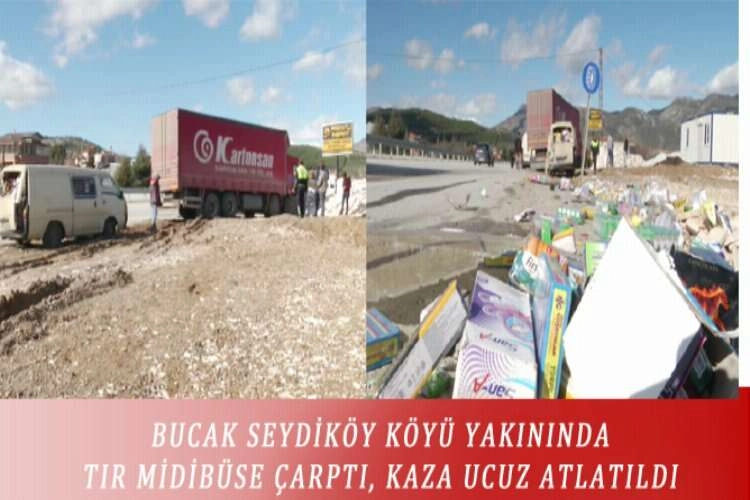 Antalya-Burdur Karayolu üzerinde sürücüsünün direksiyon hakimiyetini kaybettiği kamyon önünde seyreden araca çarptı. Kaza ucuz atlatıldı. Edinilen bilgilere göre; bugün saat 14.00 sularında Antalya-Burdur Karayolu üzerinde Burdur istikametine doğru seyir halinde olan Tufan Özkar hakimiyetindeki 41 LF 003 plakalı kamyon sürücüsü, Seydiköy Köyü yakınında önünde seyir halinde olan Cemal Şakar yönetimindeki 07 ADM 93 plakalı aracı sollamak isterken direksiyon hakimiyetini kaybederek arkadan araca çarptı. Sürücülerin yara almadan kurtulduğu kaza ucuz atlatıldı. Kamyon ve kamyonetin maddi hasar gördüğü kazada her iki araç çarpmanın etkisiyle yol kenarına savruldu. Kazayı fark eden vatandaşların haber vermesi üzerine kaza mahalline gelen Jandarma ve Polis ekipleri olay yerinde gerekli incelemeleri yaptı, kaza ile ilgili soruşturma başlatıldı.