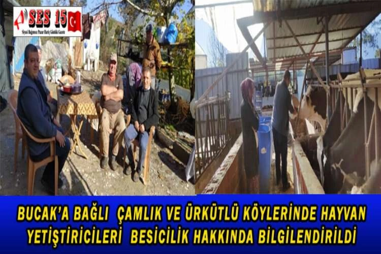 Bucak Ziraat Odası Başkanı Bilal Özel önderliğinde Erişler Yem bölge sorumlusu Zooteknist Talat Alper Haznedar'ın iş birliği ile bölgemize gelen Veteriner Hekim Cem Özdemir Çamlık (Sahil) ve Ürkütlü köylerinde besiciler ile buluştu. Besiciler Veteriner Hekim Cem Özdemir tarafından süt veriminin nasıl arttırılacağı, besin değerlerinin önemi, yemlerin hangi oranlarda kullanılması gerektiği gibi konularda bilgilendirildi. Bucak Ziraat Odası Başkanı Bilal Özel, ziyaretten duyduğu memnuniyetini ifade ederek Veteriner Hekim Cem Özdemir’e hayvan yetiştiricilerinin bilgilendirilmesi dolayısıyla da teşekkür etti.