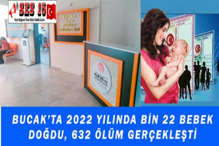 Bucak’ta 2022 yılında 2021 yılına göre doğum sayısı ve ölüm sayısı arttı. Buna göre 2022 yılında bin 22 bebek doğdu, 632 kişi vefat etti. 2021 yılında ise 681 bebek doğdu, 482 kişi yaşamını yitirdi. Son 10 yılın istatistiklerine göre en fazla doğum ve ölüm 2022 yılında kayıtlara geçti. Bucak İlçe Nüfus Müdürlüğü istatistik kayıtlarına göre 2013 yılında 885 doğum, 401 ölüm kayıtlara geçti. 2014 yılında 895 doğum, 368 ölüm gerçekleşirken, 2015 yılında 884 doğum, 348 ölüm meydana geldi. 2016 yılında 859 doğum, 370 ölüm gerçekleşti. 2017 yılında 831 doğum olurken, 370 ölüm oldu. 2018 yılında 762 bebek doğdu, 300 kişi yaşamını yitirdi, 2019 yılında 721 bebek dünyaya geldi, 320 kişi vefat etti. 2020 yılında 687 doğum oldu, 473 ölüm meydana geldi. 2021 yılında ise 681 bebek doğdu, 482 kişi yaşamını yitirdi. 2022 yılında bin 22 bebek doğdu, 632 kişi vefat etti. Yapılan 10 yıllık istatistiklere göre Bucak’ta son 10 yılda en fazla bebek doğumu ve en fazla ölüm 2022 yılında gerçekleşti.