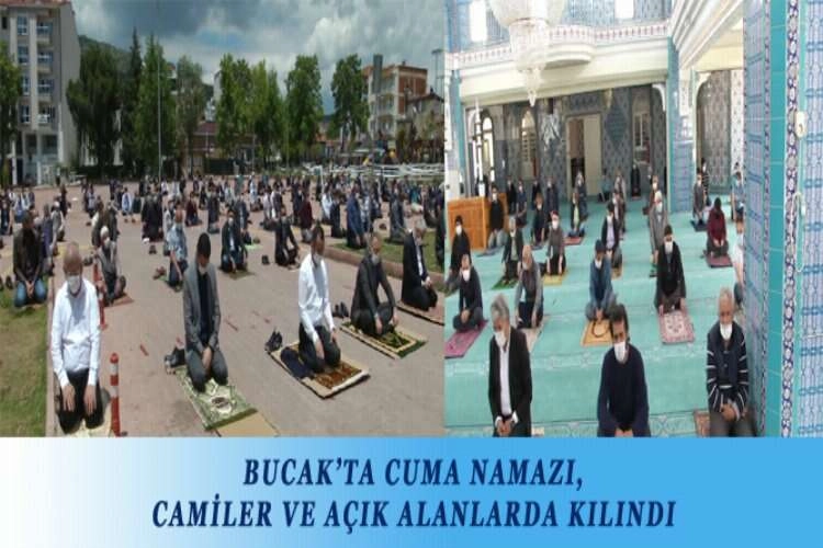 Burdur’un Bucak İlçesi’nde Cuma Namazı camileri içinde ancak sosyal mesafe kurallarına uyularak maske takılarak ve camiye alınacak cemaatin dörtte biri kadar cemaat alınarak kılındı. Bucak’ta ayrıca 3 farklı noktada açık alanda cemaatle birlikte Cuma Namazı kılındı. Sokağa çıkma kısıtlaması kapsamında olanlar hariç olmak üzere cemaat maskesini taktı, saflardaki yerini aldı. Herkes yanında seccadesini getirdi ve 10 haftalık aradan sonra Cuma günü ilk kez Cuma Namazı kılındı. Bucak İlçe Kaymakamlığı tarafından belirlenen Hacı Ömerağa Camii önü, Cumartesi Pazarı ve Organize Sanayi Bölgesinde kılınan Cuma Namazında protokol Hacı Ömerağa Camii yanında yerini aldı. AK Pati Burdur Milletvekili Yasin Uğur, Bucak İlçe Kaymakamı Erol Tanrıkulu, Bucak Belediye Başkanı Emrullah Ünal, AK Parti İlçe Başkanı Mustafa Oğuz, İlçe Müftüsü Mehmet Ersöz ve vatandaşlar katılımıyla kılınan Cuma Namazında herkesin belirtilen kurallara uygun davrandığı gözlendi. Cami içine alınan cemaatin ise ateşi ölçüldü, gerekli tüm tedbirler alındı, kontroller sağlandı ve Cuma Namazı Koronavirüs önlemlerine uygun şekilde idrak edildi.