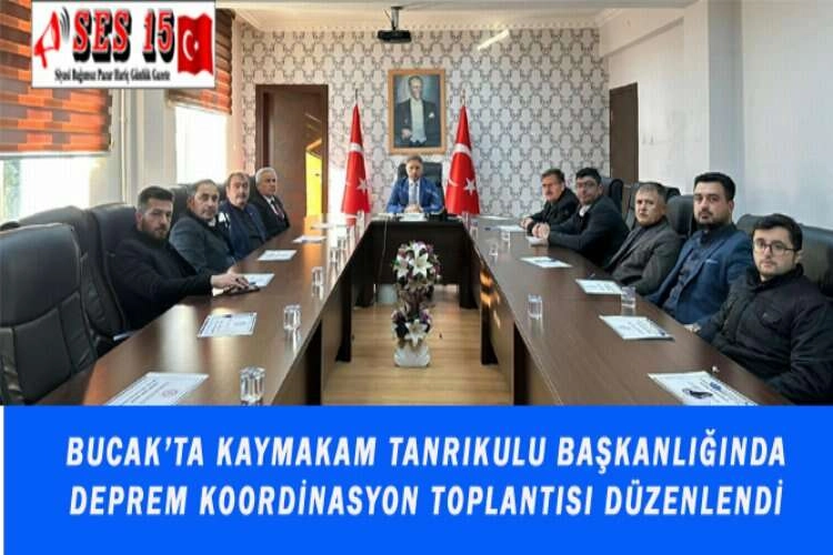 Bucak İlçe Kaymakamı Erol Tanrıkulu, Bucak İlçe Belediye Başkanı Emrullah Ünal, Belde Belediye Başkanları başta olmak üzere Kurum Müdürleri ve Sivil toplum kuruluşlarının temsilcileri ile birlikte Depremden Etkilenen vatandaşlar için Kaymakamlık Toplantı salonunda “Deprem koordinasyon toplantısı” gerçekleştirdi. Kaymakam Tanrıkulu, Depremden etkilenen Vatandaşların yaralarını daha hızlı sarabilmek, ayni ve nakdi yardımların deprem bölgesine süratli bir şekilde ulaştırılabilmesi için; Ayni Yardımların ilçemizde belirlenen toplama merkezlerine, nakdi yardımların ise Valiliğin Resmi bağış hesabına ulaştırılabileceklerini belirtti. Kaymakam Tanrıkulu, duyarlılık gösteren Bucaklı vatandaşlara, STK temsilcilerine, İş İnsanlarına ve tüm Kamu personeline teşekkür etti.