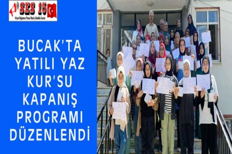 Bucak İlçe Müftülüğü’nce, kız öğrencilere yönelik ilk kez gerçekleştirilen yatılı yaz Kur’an Kursu programı sona erdi. 3 Temmuz'da açılan Yatılı Yaz Kur'an Kursunda, dört hafta süren eğitim boyunca unutulmaz anlar yaşayan öğrenciler, gelecek yıl daha büyük bir coşku ile tekrar kursa katılacaklarını dile getirdiler. Müftü İbrahim Keser, kursun tüm süreçlerinde görev alan görevlileri, öğrencileri ve velileri tebrik etti. Program kapsamında, öğrencilerin okuduğu hatmin duasını Şube Müdürü İlyas Akbaba yaptı. Daha sonra ilçe müftüsü İbrahim Keser öğrenci ve velilere hitap etti. Öğrencilere çeşitli hediye ve Katılım Belgesi verilerek program sona erdi. MECİT TÜRK