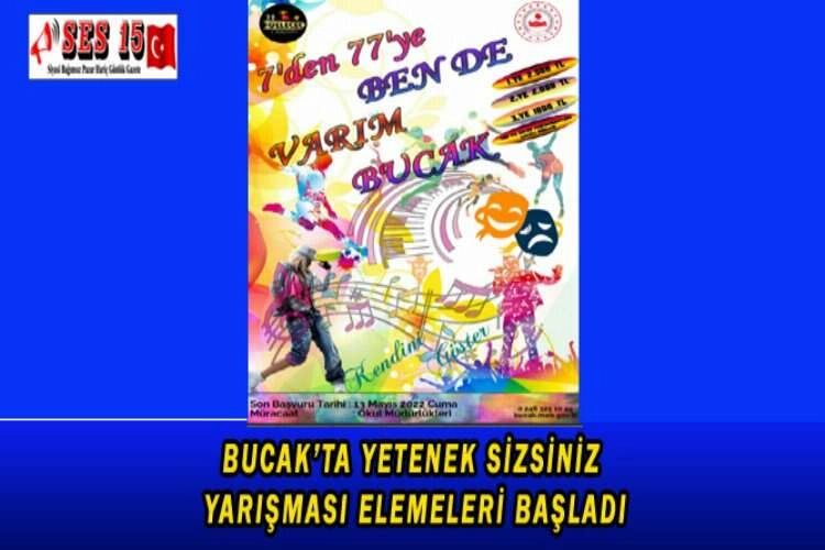 Bucak’ta Gelecek Gençlerde projesi kapsamında 7’den 77’ye Ben de Varım Bucak adı altında gerçekleştirilen Yetenek sizsiniz yarışması elemeleri başladı. Çarşamba Perşembe ve Cuma günleri yapılan elemeler Bucak Mehmet Cadıl Anadolu Lisesi Konferans Salonu’nda gerçekleştiriliyor. Yarışma sonucunda 1.’ye 2 bin 500 TL, 2.’ye 2 bin TL, ve 3.’ye bin TL para ödülü verilecek.