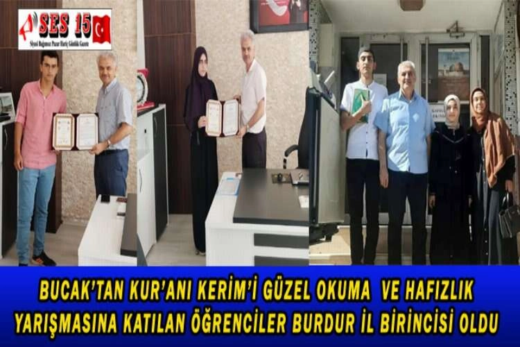 Burdur İl Müftülüğünde düzenlenen Kur’an-ı Kerim'i güzel okuma ve Hafızlık yarışması İl finallerine Bucak’ı temsilen katılan Kur’an Kursu öğrencileri il birinciliğini kazanarak bölge yarışmasına katılmaya hak kazandılar. Diyanet İşleri Başkanlığı’nın Kur’an Kursları arasında düzenlemiş olduğu Kur’an-ı Kerim'i güzel okuma ve Hafızlık yarışması İl finalleri, Burdur İl Müftülüğünde yapıldı. Yarışmada Bucak’ı temsil eden Merkez Erkek Yatılı Kur'an Kursu ve Yeni Mahalle Yatılı Kız Kur’an Kursu öğrencileri İl birincisi olarak, gelecek günlerde yapılacak olan bölge yarışmasına katılmaya hak kazandılar.