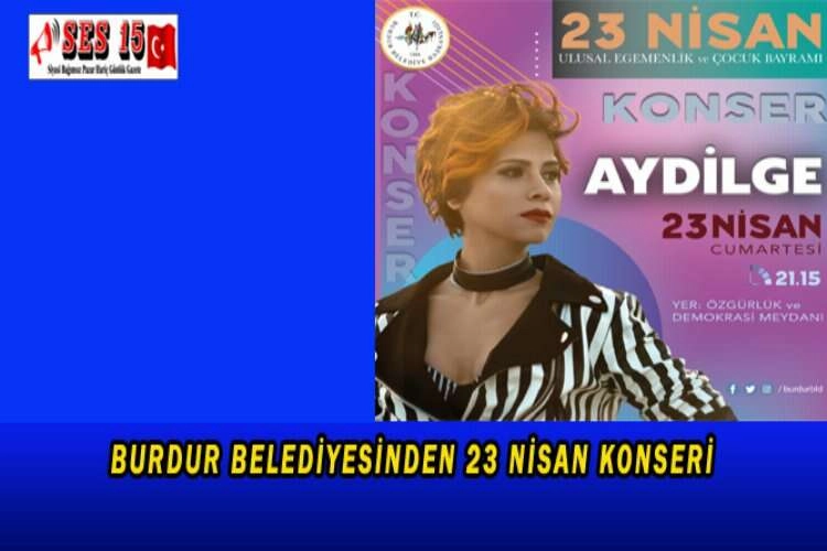 Burdur Belediyesi, 23 Nisan Ulusal Egemenlik ve Çocuk Bayramı kutlamaları kapsamında, Burdurluları ünlü sanatçı Aydilge’nin vereceği konser ile buluşturacak. Burdur Belediyesi, 23 Nisan Ulusal Egemenlik ve Çocuk Bayramı kutlamaları kapsamında, Burdurluları ünlü sanatçı Aydilge’nin vereceği konser ile buluşturacak. Aydilge konseri, 23 Nisan Cumartesi günü saat 21.15’de Özgürlük ve Demokrasi Meydanında başlayacak. Konserle ilgili bilgi veren Burdur Belediye Başkanı Ali Orkun Ercengiz “Geçtiğimiz yıllarda olduğu gibi bu yıl da bayram coşkusunu hep birlikte yaşamak için güzel bir organizasyona imza atacağız. Milli bayram coşkusunu hep birlikte yaşayacağız. 23 Nisan Cumartesi günü saat 21.15'de tüm hemşehrilerimi Özgürlük ve Demokrasi Meydanına bekliyorum. Şimdiden herkesin bayramı kutlu olsun” dedi.