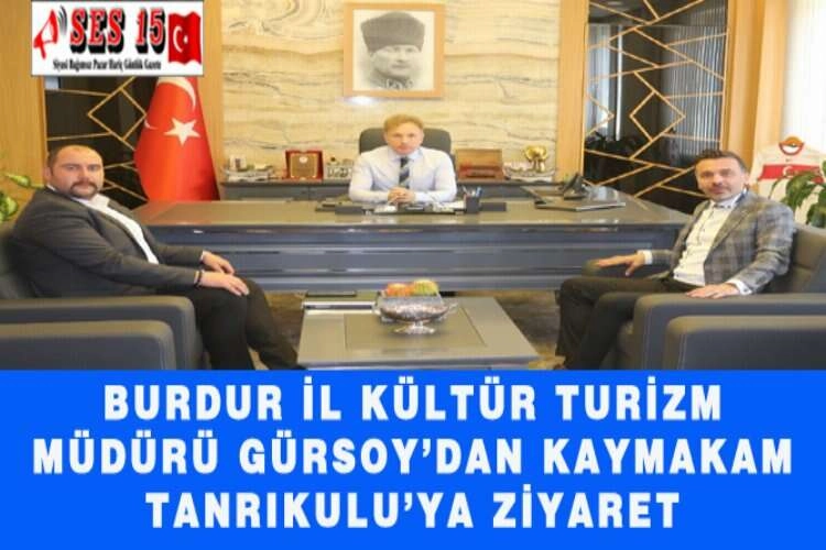 Burdur İl Kültür Turizm Müdürü ibrahim Emre Gürsoy ve Burdur İl Halk Kütüphanesi Müdür Yardımcısı Fatih Ahmet Korkmaz ile birlikte Bucak İlçe Kaymakamı Erol Tanrıkulu’nu ziyaret etti. MECİT TÜRK