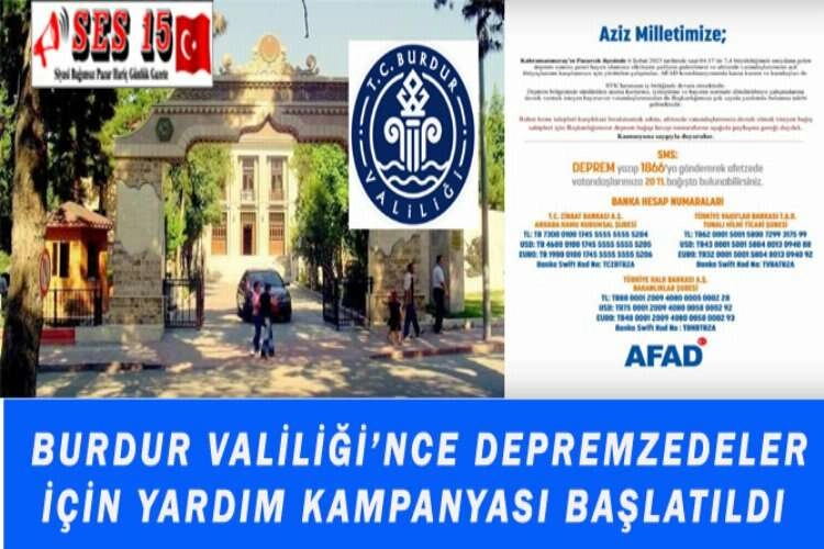 Burdur Valiliği tarafından depremden etkilenen vatandaşlara acilen ulaştırılmak üzere Valilik koordinesinde ayni ve nakdi yardım kampanyası başlatıldı. Konuyla ilgili olarak Burdur Valiliği tarafından yapılan açıklamada, “Depremden etkilenen vatandaşlarımıza acilen ulaştırılmak üzere Valiliğimiz koordinesinde ayni ve nakdi yardım kampanyası başlatılmıştır. Ayni bağışta bulunmak isteyen vatandaşlarımız öncelikle katalitik soba, kışlık kıyafet, battaniye, hijyenik malzeme, çocuk bezi ve maması, hazır ve bozulmayacak nitelikte paketli gıda vb. bağışlarını ikamet ettikleri merkez ve ilçelerdeki Sosyal Yardımlaşma ve Dayanışma Vakfı aracılığıyla bölgeye iletebilecektir. Kampanyaya nakdi destek vermek isteyen vatandaşlarımız, “DEPREM” yazarak 1866’ya SMS gönderebilecek (01 Ocak 2023 tarihi itibariyle SMS bedeli: 20 TL'dir) ya da görselde yer alan AFAD Başkanlığının hesap numaraları üzerinden bağış yapabilecektir. Kamuoyuna saygıyla duyurulur” denildi.