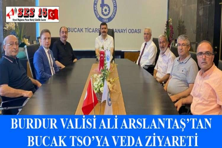 Cumhurbaşkanlığı kararnamesi ile Vali-Mülkiye Başmüfettişliği görevine atanan Burdur Valisi Ali Arslantaş, veda ziyaretleri kapsamında Bucak Ticaret ve Sanayi Odası’nı ziyaret ederek Yönetim Kurulu Başkanı Hasan Yalçın Meçikoğlu ve Bucak Ticaret ve Sanayi Odası Yönetim Kurulu Üyeleri ile vedalaştı.