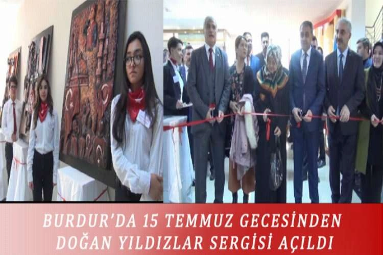 Burdur’da Güzel Sanatlar Lisesi öğrencilerinin eserlerinden oluşan “15 Temmuz’dan Gecesinden Doğan Yıldızlar” sergisi açıldı. İl Milli Eğitim Müdürlüğü giriş katında açılan sergide Güzel Sanatlar Lisesi 11’inci sınıf öğrencilerinin kilden yaptıkları rölyeflerle 15 Temmuz’u anlattıkları ve 10 eserin yer aldığı serginin açılışını Vali Hasan Şıldak, Ak Parti Burdur Milletvekili Bayram Özçelik, 15 Temmuz Şehidi Ömer Halisdemir’in ablası Elif Serin, 15 Temmuz günü bombalanan Özel Harekat Dairesinde şehit olan Burdurlu Polis Memuru Akif Altay’ın annesi Fadime Altay ve İl Milli Eğitim Müdürü Mahmut Bayram yaptı. Açılışta konuşan Vali Şıldak; “Buradaki faaliyet sıradan bir sergi değil, son derece anlamlı. Sanatsal değerinin yanı sıra asıl tarihimizde yer alan bir hainliği anlatan ve büyük mesajlar veren bir çalışma. Bu çalışmayı daha anlamlı kılan da iki aziz şehidimizin aileleri ile bu sergiyi açmamız” dedi. Serginin gezilmesi sırasında Ömer Halisdemir’in ablası Elif Serin, kardeşinin rölyefini görünce gözyaşlarını tutamadı. Vali Şıldak, protokol üyeleri ve şehit yakınları öğrencilere teşekkür belgesi verdi.