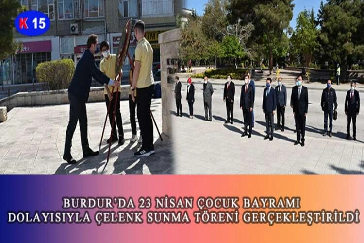 Burdur’da 23 Nisan Ulusal Egemenlik ve Çocuk Bayramı dolayısıyla Çelenk Sunma Töreni gerçekleştirildi. Burdur Cumhuriyet Meydanındaki törenine, İl Milli Eğitim Müdürümüz Emre Çay, Burdur Belediye Başkanı Sayın Ali Orkun Ercengiz, Burdur Baro Başkanı Sayın Ramazan Gedik ve İl Milli Eğitim Müdürlüğü yöneticileri katıldı. Covid - 19 salgını nedeniyle sosyal mesafenin korunduğu tören; İl Milli Eğitim Müdürü Emre Çay'ın çelenk sunumuyla başladı. Tören saygı duruşu ve İstiklal Marşı'nın ardından sona erdi.