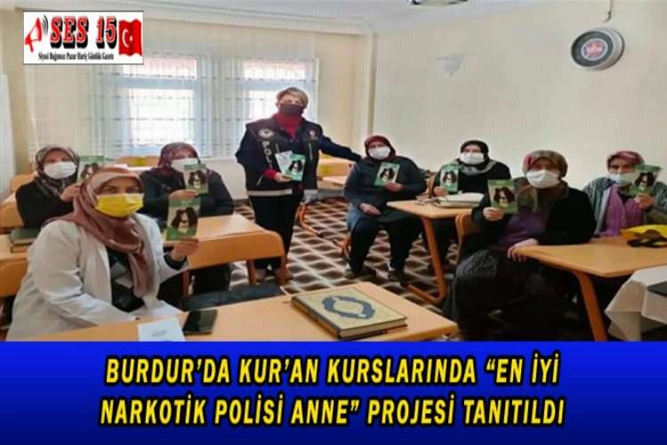 Burdur Emniyet Müdürlüğü Narkotik Suçlarla Mücadele Şube Müdürlüğü personeli tarafından İl Müftülüğü’ne bağlı Kur'an kurslarında "En İyi Narkotik Polisi Anne" projesinin tanıtımlı yapıldı. Toplumda uyuşturucu ile mücadele farkındalığının oluşturulması amacıyla Kur'an kurslarında eğitim gören bayanlara eğitim verildi.