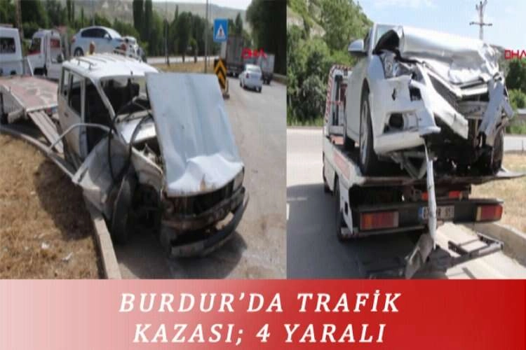 Burdur'da iki otomobilin çarpıştığı kazada 3'ü öğretmen 4 kişi yaralandı. Edinilen bilgilere göre; Kaza Çarşamba günü saat 15.30 sularında Kurna köyü kavşağında meydana geldi. Süleyman Seven'in (45) kullandığı 32 EL 535 plakalı otomobille Nuri Yavuz Işıldak'ın (36) kullandığı 15 BA 177 plakalı otomobil çarpıştı. Kazada Nuri Yavuz Işıldak, aynı araçta bulunan Elif Kaya (31) ve Saim Türkcan (34) ile diğer sürücü Süleyman Seven yaralandı. Yaralılar kazayı görenlerin haber vermesi üzerine olay yerine gelen ambulanslarla Burdur Devlet Hastanesi'ne kaldırılarak tedavi altına alındı. Yaralılardan Süleyman Seven'in hayati tehlikesinin bulunduğu öğrenildi. Nuri Yavuz Işıldak, Elif Kaya ve Saim Türkcan'ın Ağlasun ilçesinde öğretmen olduğu ve Burdur'a dönmek üzere yola çıktıkları belirtildi.