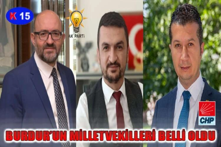 Cumhurbaşkanlığı ve 28’nci Dönem Milletvekilliği Genel seçimlerinin tamamlanmasından Burdur’un 3 milletvekili belli oldu. 14 Mayıs milletvekilliği sonuçlarına göre; Ak Parti’den Âdem Korkmaz, Mustafa Oğuz CHP’den ise İzzet Akbulut milletvekili seçildi. 3 vekil, Türkiye Büyük Millet Meclisinde Burdur’u temsil edecek.
