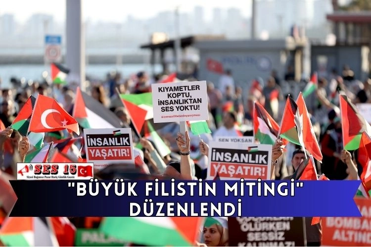 Mersin Filistin Dayanışma Platformu öncülüğünde Adnan Menderes Bulvarı'nın sahil şeridindeki Özgecan Aslan Barış Meydanı'nda organize edilen mitinge yaklaşık 6 bin kişi katıldı.