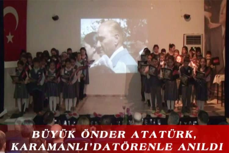 Program, Atatürk anıtı önünde düzenlenen törenle başladı. Törene, Burdur Vali Yardımcısı Mehmet Yıldız, Belediye Başkanı Fatih Selimoğlu, daire müdürleri, öğretmenler, öğrenciler, sivil toplum kuruluşlarının temsilcileri ve vatandaşlar katıldı. Atatürk anıtına çelenklerin sunulmasının ardından, saat 09.05’te sirenlerin eşliğinde, 2 dakika saygı duruşunda bulunuldu. Buradaki tören, İstiklal Marşı’nın okunmasının ardından sona erdi. Karamanlı Nimet Güvener İlkokulu Konferans salonunda devam eden programda konuşma yapan, Nimet Güvener İlkokulu Müdürü Ömer Temelli, Türk tarihinin en büyük aydınlanma ve çağdaşlaşma hareketini başlatan Atatürk’ün, askeri zaferini, kurduğu cumhuriyet ve yaşama geçirdiği devrimlerle taçlandırdığını söyledi.
