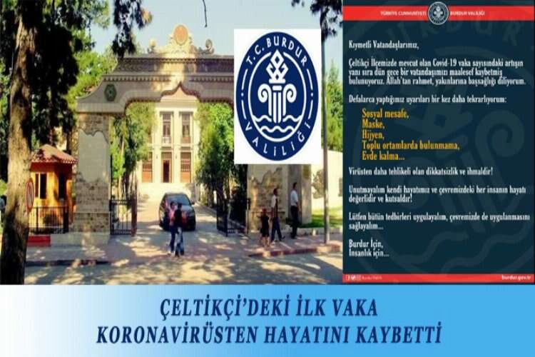 Çeltikçi’deki ilk koronavirüs vakasına yakalanan ve 26 Nisan tarihinden bu yana Bucak Devlet Hastanesi’nde tedavi gören kişi Çarşamba gecesi hayatını kaybetti. Vali Hasan Şıldak, yaptığı paylaşımda; “Kıymetli Vatandaşlarımız, Çeltikçi ilçesinde mevcut olan Covid-19 vaka sayısındaki artışın yanı sıra dün gece bir vatandaşımızı kaybetmiş bulunuyoruz. Allah’tan rahmet yakınlarına başsağlığı diliyorum. Defalarca yaptığımız uyarıları bir kez daha tekrar ediyorum. Sosyal mesafe, maske, Hijyen, toplu ortamlarda bulunmama, Evde kalma. Virüsten daha tehlikeli olan dikkatsizlik ve ihmaldir. Unutmayalım kendi hayatımız ve çevremizdeki her insanın hayatı değerlidir ve kutsaldır. Lütfen bütün tedbirleri uygulayalım ve çevremizde de uygulanmasını sağlayalım. Burdur İçin, İnsanlık İçin…”