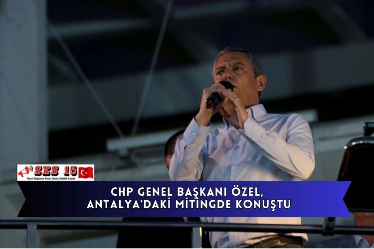 Antalya Büyükşehir Belediyesi önünde otobüs üzerinden kalabalığa hitap eden Özel, Böcek'in bir kumpasla içeride tutulduğunu öne sürerek, ona sahip çıkmaya geldiklerini belirtti.