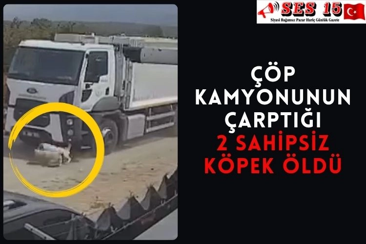 Sakarya Karapürçek'te belediyeye ait bir çöp kamyonu, yola atlayan 2 sahipsiz köpeğe çarparak ölmelerine neden oldu.