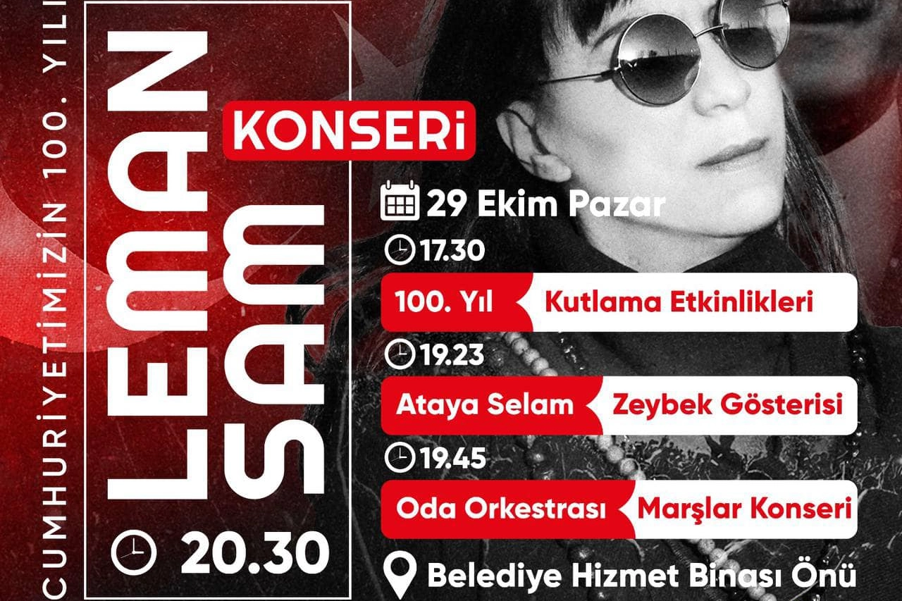 Belediye önündeki coşku son olarak sevilen sanatçı Leman Sam’ın vereceği konserle taçlanacak. 20,30’da başlayacak konserde Sam, akıllara kazınan sevilen parçalarını alanı dolduran binlerce vatandaş için seslendirecek.