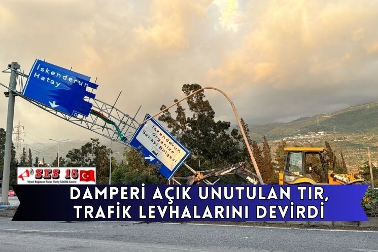 Sürücüsünün kimliği henüz öğrenilemeyen damperi açık unutulan 27 AEK 578 tır, Azganlık Mahallesi mevkisinde trafik levhalarına çarptı.