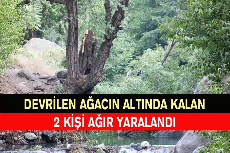 Devrilen ağacın altında kalan Mehmet H. K. (20) ile H.A. (12) ağır yaralandı.