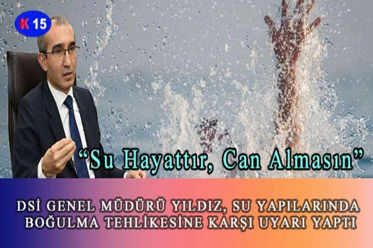 "Su hayattır, can almasın" Yaz aylarında havaların çok sıcak olması nedeniyle DSİ tarafından çeşitli önlemler alınmasına karşın baraj, gölet ve sulama kanalları başta olmak üzere suya girilmesi yasak olan bölgelerde boğulma vakalarının yaşandığının altını çizen Yıldız, şunları kaydetti: "Serinlemek ya da yüzmek maksadıyla barajlar ve kanallara girmek hayati risk oluşturmaktadır. Baraj, gölet ve sulama kanallarına girmenin tehlikeli ve yasak olduğu bilinmelidir. Unutulmamalıdır ki her yıl sulama kanalı, baraj ve göletlerde serinlemek isteyen onlarca çocuğumuz ve gencimiz can vermektedir. Uzmanlar, deniz, nehir, göl, sulama kanalı veya havuza yüzmek ya da serinlemek için girenlerin çoğunun yüzme bilmediğini ifade ediyor. Biz diyoruz ki Su hayattır, can almasın." Genel Müdürlük olarak kamu spotuyla bu konuyla ilgili çalışmalar yaptıklerinin altını çizen Yıldız, ‘Gölet, baraj ve sulama kanallarında gerekli uyarı levhalarımız var. Suya girilmesinin tehlikeli olduğuna dair uyarı levhalarımız var. Sulama kanallımızın çevrelerinde de çitlerimiz var. Özellikle yerleşim yerlerinin içinden geçen kanalların kenarlarında çitlerimiz var. Ama buna rağmen çocuklarımız havanın sıcak olması nedeniyle serinlemek için buralara giriyor. Çocuklarımız göletimiz korunaklı olmasına rağmen çitleri keserek suya giriyor. Burada en büyük görev ailelerimize düşüyor. Çocuklarımıza sahip çıkması gerekiyor. Böyle olumsuz durumların yaşanması bizi derinden üzüyor. “dedi.