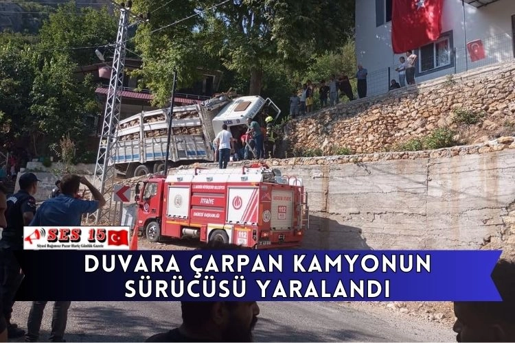 Kontrolden çıkan kamyon ağaca çarpmasının ardından bir evin bahçe duvarına çarparak durabildi.