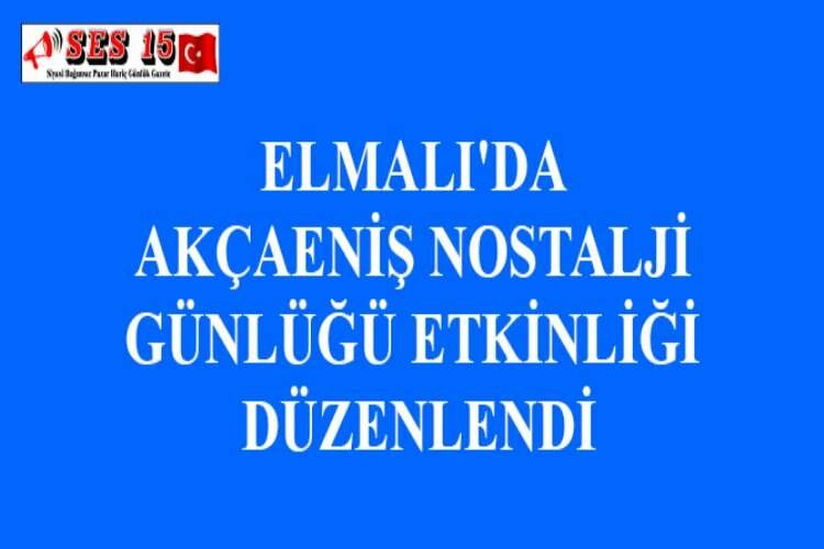 Antalya'nın Elmalı ilçesinde Akçaeniş Nostalji Günlüğü etkinliği gerçekleştirildi. Elmalı Belediyesi Kültür Müdürlüğünce düzenlenen etkinlikte müzisyen İsmail Çakır sahne aldı. Bölgenin kültürünü yeni nesillere taşımak istediklerini dile getiren Belediye Başkanı Halil Öztürk, etkinlik için emeği geçenlere ve katılımcılara teşekkür etti. AA