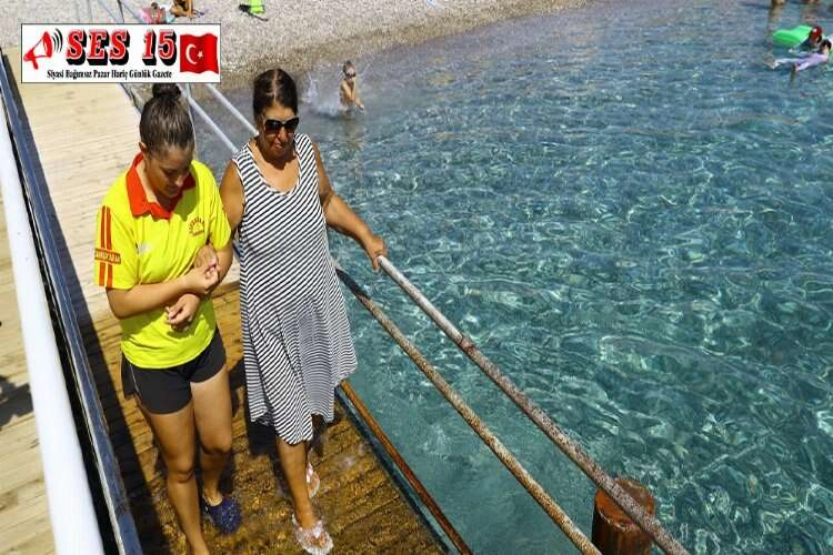 Konyaaltı Sahili'nde yer alan Engelsiz Plaj, yerli ve yabancı engelli turistlerin denize ulaşmasını kolaylaştırdı. Büyükşehir Belediyesinden yapılan açıklamaya göre, Konyaaltı Sahili'nde engelli bireylere hizmet veren Engelsiz Plaj, Antalya halkının yanı sıra yerli ve yabancı engelli ziyaretçilerin de tercihi oluyor. Cankurtaran ve görevli personellerin bulunduğu plajda, özel rampalı platformlar aracılığıyla denize kolayca erişme fırsatı bulunuyor. Sosyal Hizmetler Dairesi Başkanlığı Engelli Hizmetleri Şube Müdürü Fatin Iltar, engelsiz plajın gördüğü ilgiden mutlu olduklarını belirterek, "Plajımıza dünyanın her yerinden engelli insanlar geliyor. Eylül ayı itibarıyla hafta sonu 1500 civarı engellimize hizmet veriyoruz."dedi. Almanya'dan tatile gelen Yasemin ve Durali Tunç çifti de engelsiz plajda rahatlıkla denize girdiklerini söyledi. Tunç çifti," Büyükşehir Belediyesi’nin engelli bireyleri düşünmesi ve bu hassasiyeti çok hoşumuza gitti. Denize korkmadan giriyoruz, cankurtaranların yakınlarda olması ise güven veriyor." ifadelerini kullandı. AA