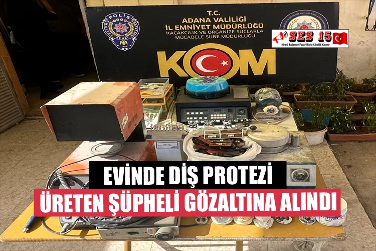 Adana'da laboratuvara dönüştürdüğü evinde diş protezi imal ettiği belirlenen şüpheli gözaltına alındı.