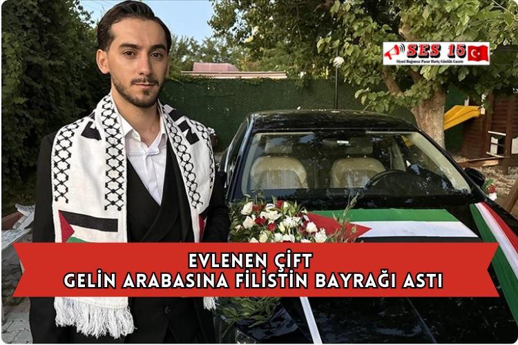 Genç çiftin isteği üzerine gelin arabasına Filistin bayrağı asıldı, aracın süslemelerinde bayrağın renklerini taşıyan çiçekler ve şeritler seçildi.