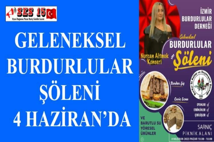 İzmir Burdurlular Derneği tarafından her yıl geleneksel olarak düzenlenen “Geleneksel Burdurlular Şöleni” bu yıl 4 Haziran Pazar günü yapılacak. Sarnıç Piknik Alanı’nda yapılacak olan etkinlikte, Türk Halk Müziği Sanatçısı Nurcan Altınok sahne alacak.