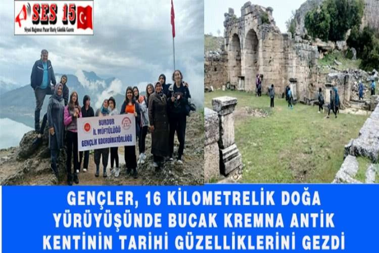 Burdur Diyanet Gençlik tarafından Bucak kent müzesi ziyareti ve Çamlık köyünde bulunan Kremna Antik Kentine doğa yürüyüşü trekking etkinliği gerçekleştirildi. Uçurumlar Vadisinden Şeytan Kayalıklarına uzanan 16 kilometrelik trekking etkinliği Patika Bucak doğa sporları ve Türkiye dağcılık Federasyonu