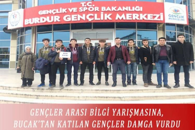 Gençlik ve Spor Bakanlığı Gençlik Hizmetleri Genel Müdürlüğü tarafından gençlerde milli duygularımızın ve kültürümüzün yaşatılması, gençlerimiz arasında yaygınlaşmasının sağlanması, benimsenmesi ve gençlerin serbest zamanlarının değerlendirilmesine katkıda bulunmak amacıyla her yıl Kültür Sanat Yarışmaları düzenlenmektedir. Bu kapsamda düzenlenen Gençler Arası Bilgi Yarışmasının Lise kategorisi il elemeleri Burdur Gençlik Merkezi’nde 11 grubun katılımıyla coşkulu, heyecan dolu ve kıyasıya mücadele şeklinde gerçekleştirilmiştir. 15 sorunun sorulduğu yarışmada ilçemizden katılan Mehmet Cadıl Anadolu Lisesi öğrencileri Sezer SEZGİN, Halil KURNAZ ve Serhat ERGÜN “Kuvayı Milliye” grup ismiyle geçen sene olduğu gibi bu sene de il 1. si olmuştur. 1. Olan grubumuz Burdur ilini Mersin’de yapılacak olan Bölge yarışmasında temsil edecektir. Her biri Bucak Gençlik Merkezi üyesi Olan ''Kuvayı Milliye'' grubuna başarılar diler ve diğer tüm katılımcılara teşekkür ederiz.
