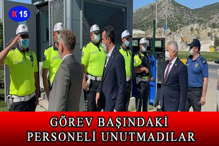 AK Parti Heyeti Bucak'ta görev başında olan personeli unutmadı. AK Parti Burdur Milletvekili Yasin Uğur, Bucak Kaymakamı Erol Tanrıkulu ve Belediye Başkanı Emrullah Ünal, jandarma, emniyet ve itfaiye personeliyle bayramlaştı. Milletvekili Uğur, Kaymakam Tanrıkulu ve Başkan Ünal ilk olarak İlçe Jandarma Komutanlığı’nı ziyaret ederek, görev başında olan personelin bayramını kutladı. Daha sonra İlçe Emniyet Müdürlüğü’ne yapılan ziyarette de Müdür Uğur Duman ve personelle bayramlaşıldı. Sonrasındaysa Antalya-Burdur Karayolu üzerindeki Bölge Trafik Denetleme İstasyon Amirliği’nde görevli personel ziyaret edildi. Gerçekleştirilen ziyaretlerde maske, sosyal mesafe ve hijyen kurallarına dikkat edildi.