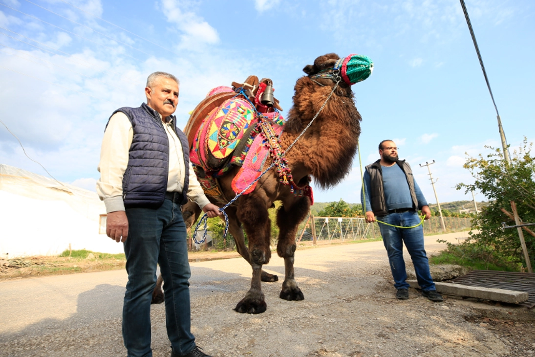 Antalya'da dedesi ve babasından kalma deve güreşi tutkusunu sürdüren muhtar İbrahim Arslantaş, güreş sahalarında "mega star" olarak anılan devesi Arslanbey'e özel bakım uyguluyor.