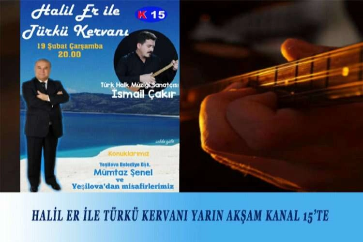 Kanal 15 Televizyonunda yayınlanan “Halil Er ile Türkü Kervanı” programı birbirinden eğlenceli konukları ve yörenin sevilen türküleri ile bugün akşam canlı yayınla sizlerle olacak. Ekranların sevilen yüzü Türk Halk Müziği Sanatçısı Halil Er’in hazırlayıp sunduğu bugün akşam saat 20.00’de canlı yayın ile izleyicisi ile buluşacak programın konuğu Türk Halk Müziği Sanatçısı İsmail Çakır olacak. İzleyicileri ekran başına kilitleyen programın yeni bölümünde Halil Er ve konuğu sevilen Türk Halk Müziği türkülerini canlı yayında sizler için seslendirecek. Programa Burdur Yeşilova Belediye Başkanı Mümtaz Şenel ve Yeşilova halkı konuk seyirci olarak katılacak. Bugün akşam saat 20.00’da yayınlanacak olan “Halil Er’le Türkü Kervanı” programını sakın kaçırmayın.