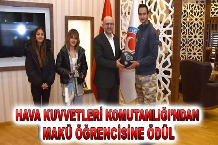Burdur Mehmet Akif Ersoy Üniversitesi (MAKÜ) Eğitim Fakültesi Resim Öğretmenliği Bölümü öğrencisi Büşra Sema Andaş, “Pençe” adlı tablosu ile Hava Kuvvetleri Komutanlığı tarafından hizmet anısı ile ödüllendirildi. Rektörlük makamında gerçekleştirilen ödül törenine Rektör Prof. Dr. Adem Korkmaz, Eğitim Fakültesi Dekanı Prof. Dr. Firdevs Savi Çakar, Hv. Plt. Üst. Tğm. Oğuzhan Akın ve Büşra Sema Andaş katıldı. MAKÜ öğrencisi Büşra Sema Andaş’a ödülü Hv. Plt. Üst. Tğm. Oğuzhan Akın tarafından verildi. Rektör Prof. Dr. Adem Korkmaz da hem Hv. Plt. Üst. Tğm. Oğuzhan Akın’a hem Büşra Sema Andaş’a hediye, anmalık ve el dikimi futbol topu hediye etti.