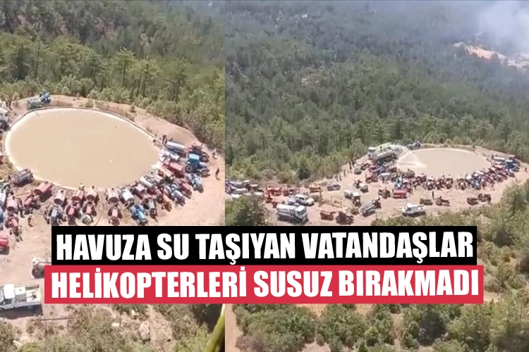 Harmancık'ta onlarca vatandaş traktörlerinin arkalarına bağladıkları su dolu tankerlerle, helikopterler için yangın söndürme havuzuna su taşıdı.